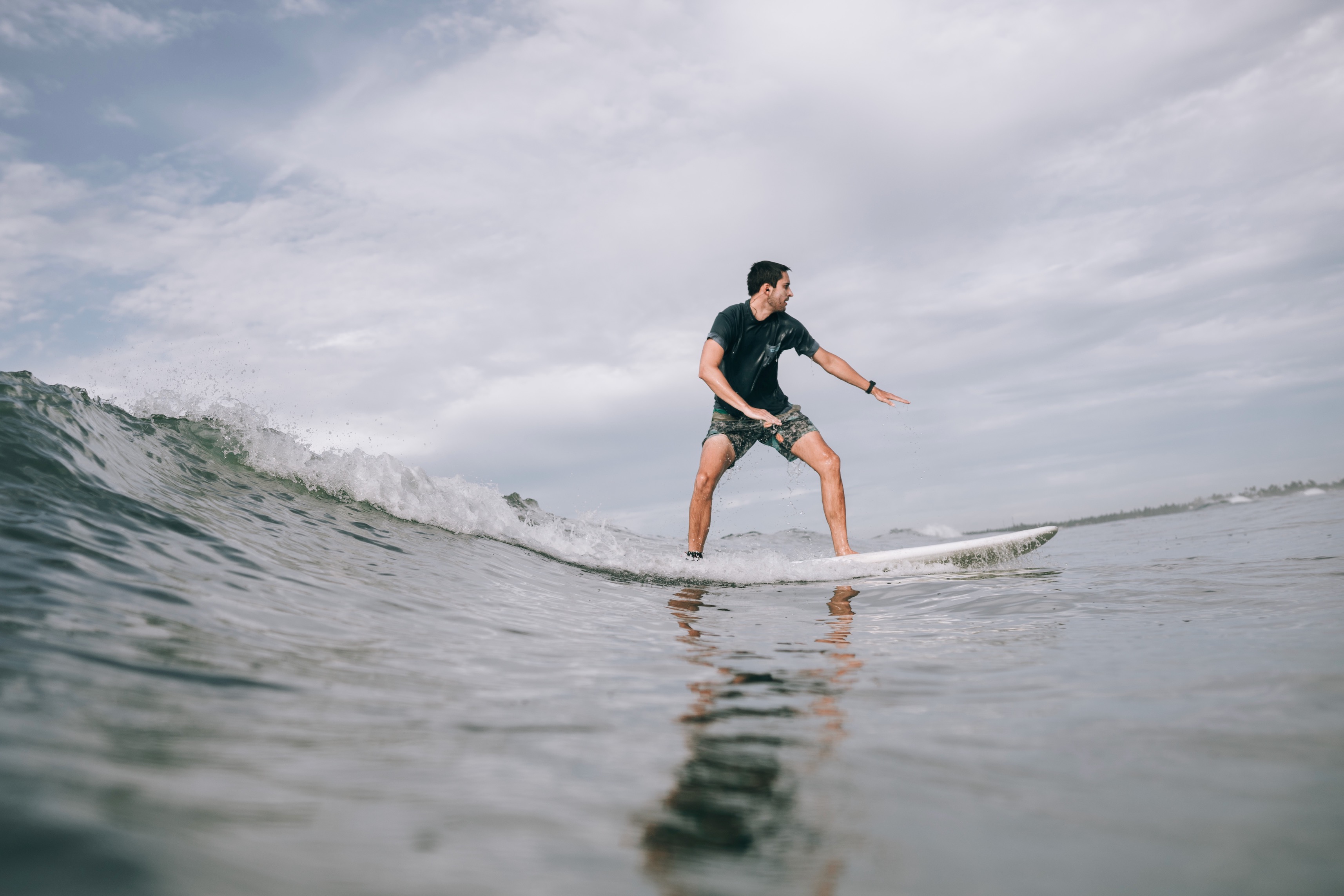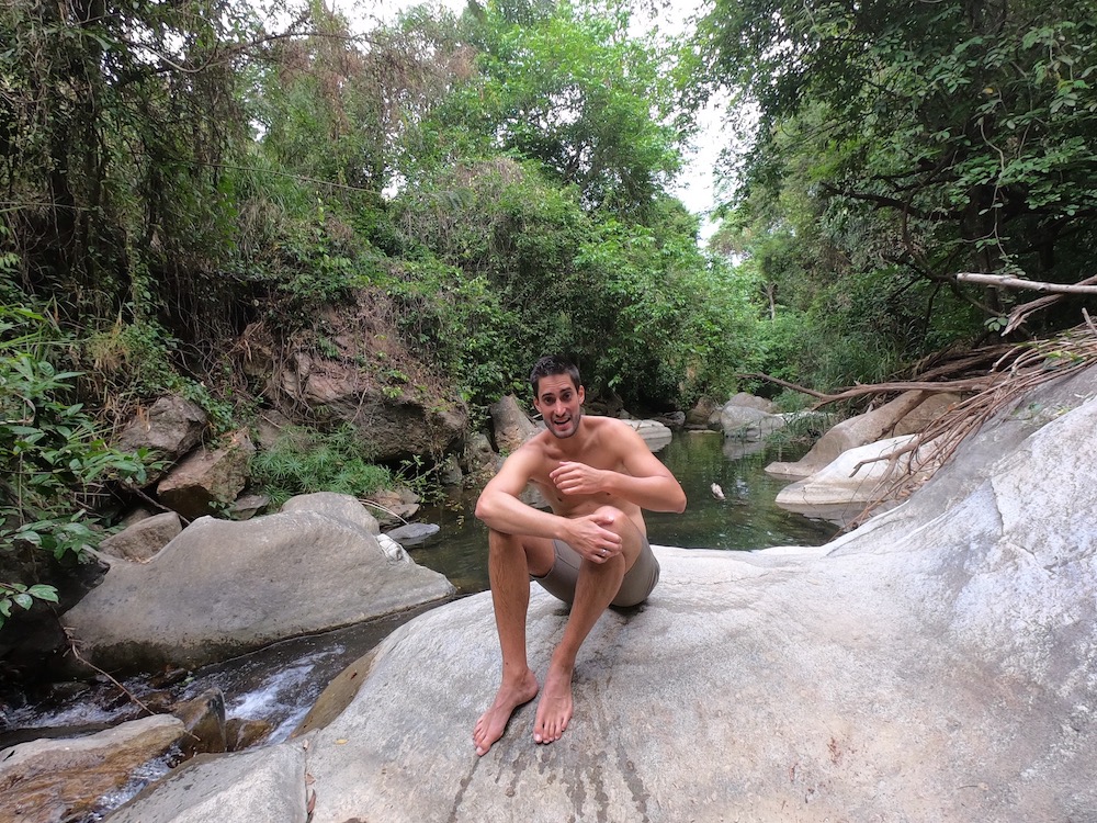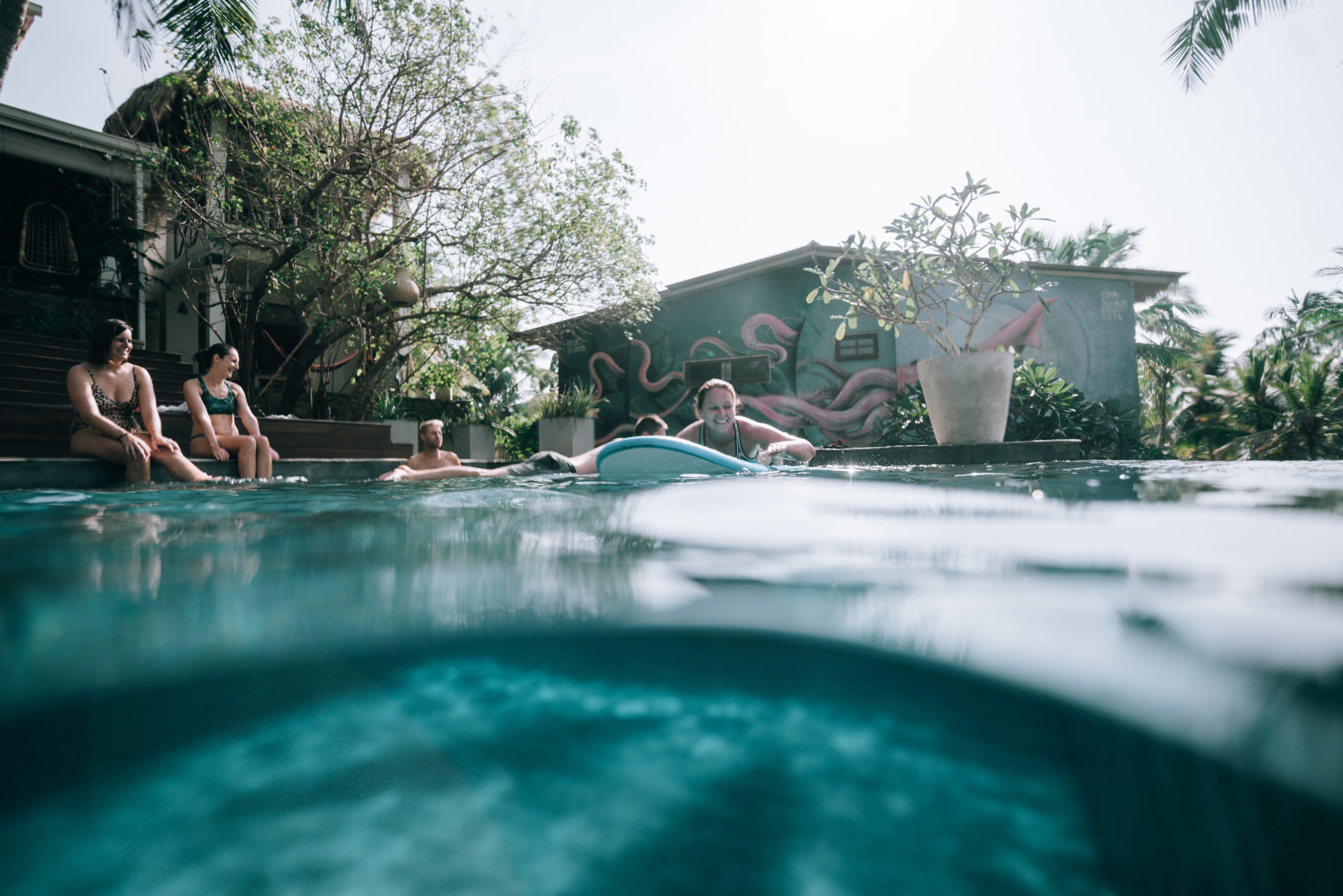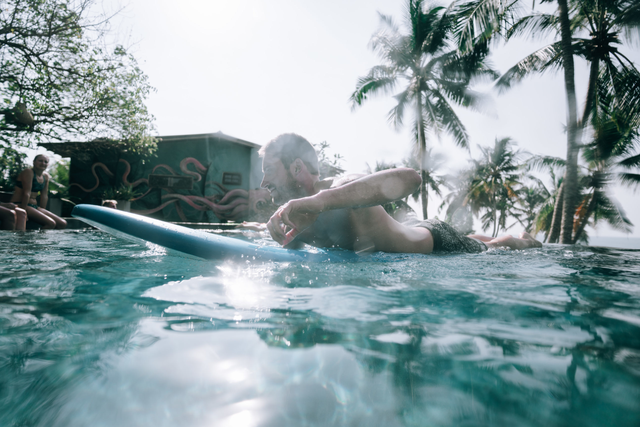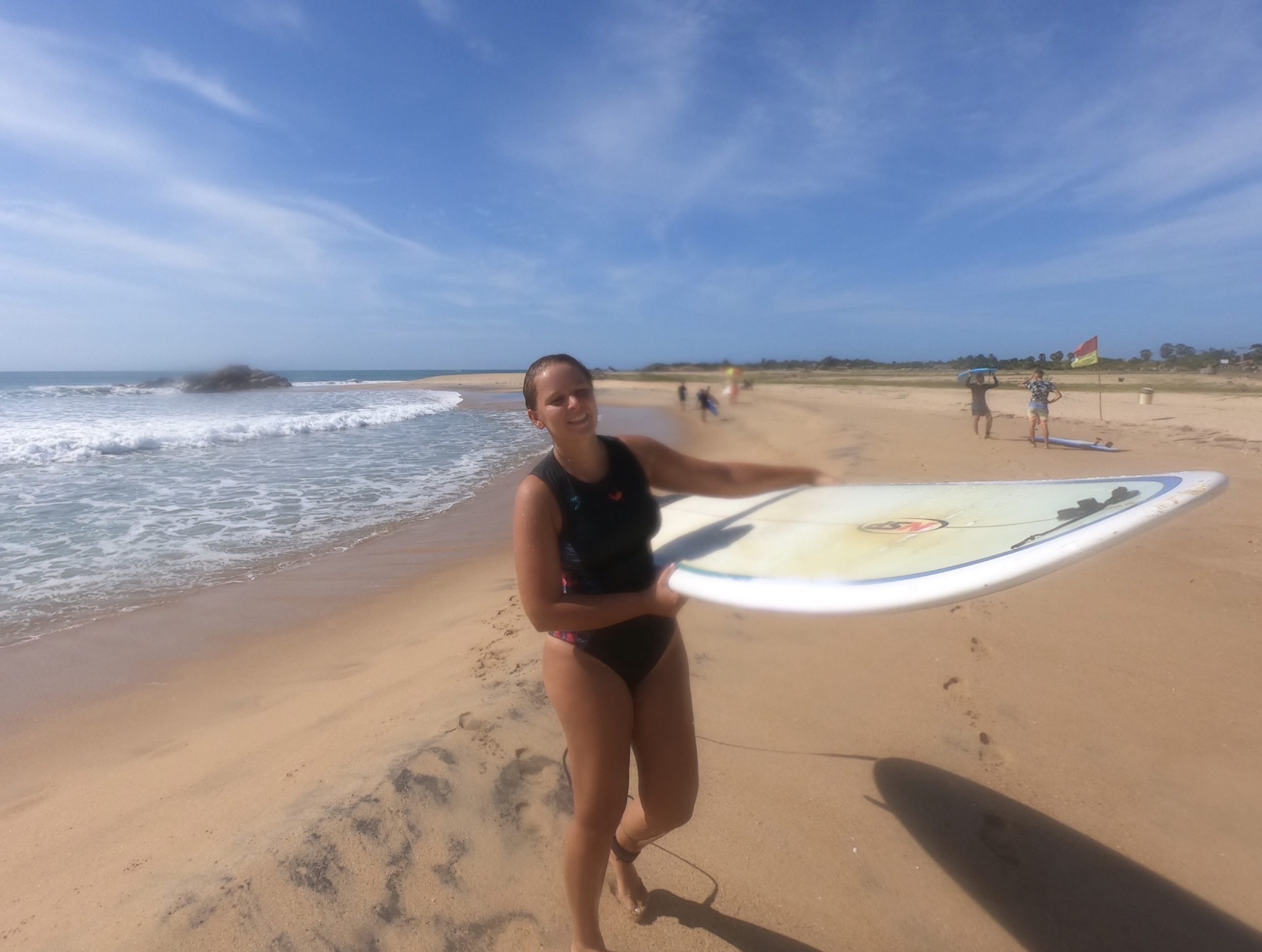 Die Zeit verschwimmt – ich musste gerade erstmal genau nachzählen wie lange wir eigentlich schon unterwegs sind. Weit gekommen sind wir noch nicht 🙂 Die Regenzeit hat begonnen, überall krabbeln Insekten und alles ist feucht. Unsere Geräte fangen an zu rosten und Kristofers Laptop ist komplett kaputt gegangen. Deswegen haben wir uns von der Beach View getrennt und sind in ein super schönes Dschungel Haus mit eigenem Pool umgezogen. Hier lässt es sich gut in den Tag hinein leben. So langsam zieht es uns aber weiter in Richtung Osten, wo die Trockenzeit beginnt und die Wellen jetzt besser laufen. Nach vielen Gesprächen mit der Polizei und diversen Behörden, durften wir den Distrikt wechseln und sind jetzt wieder bereit für das Meer!
