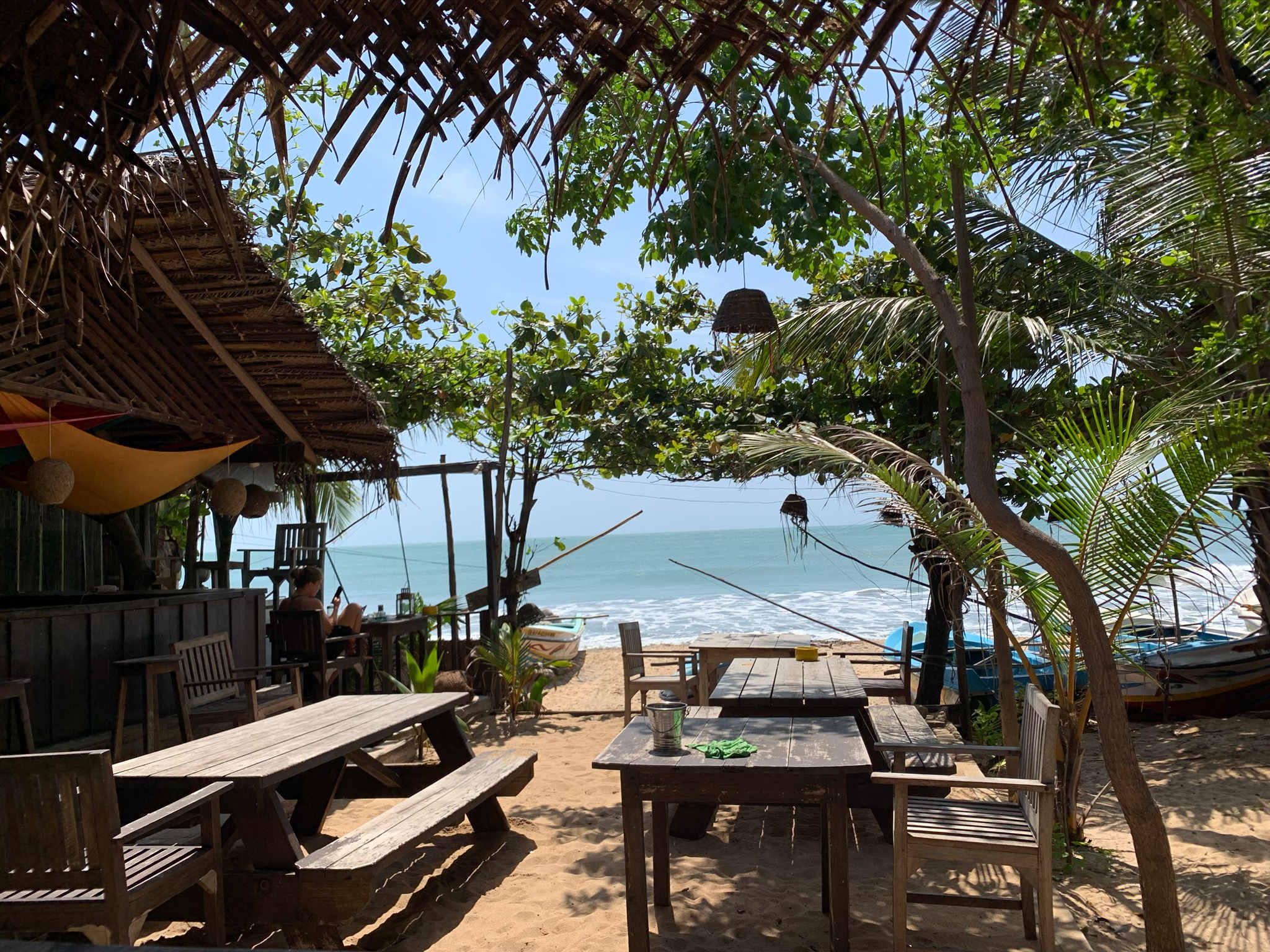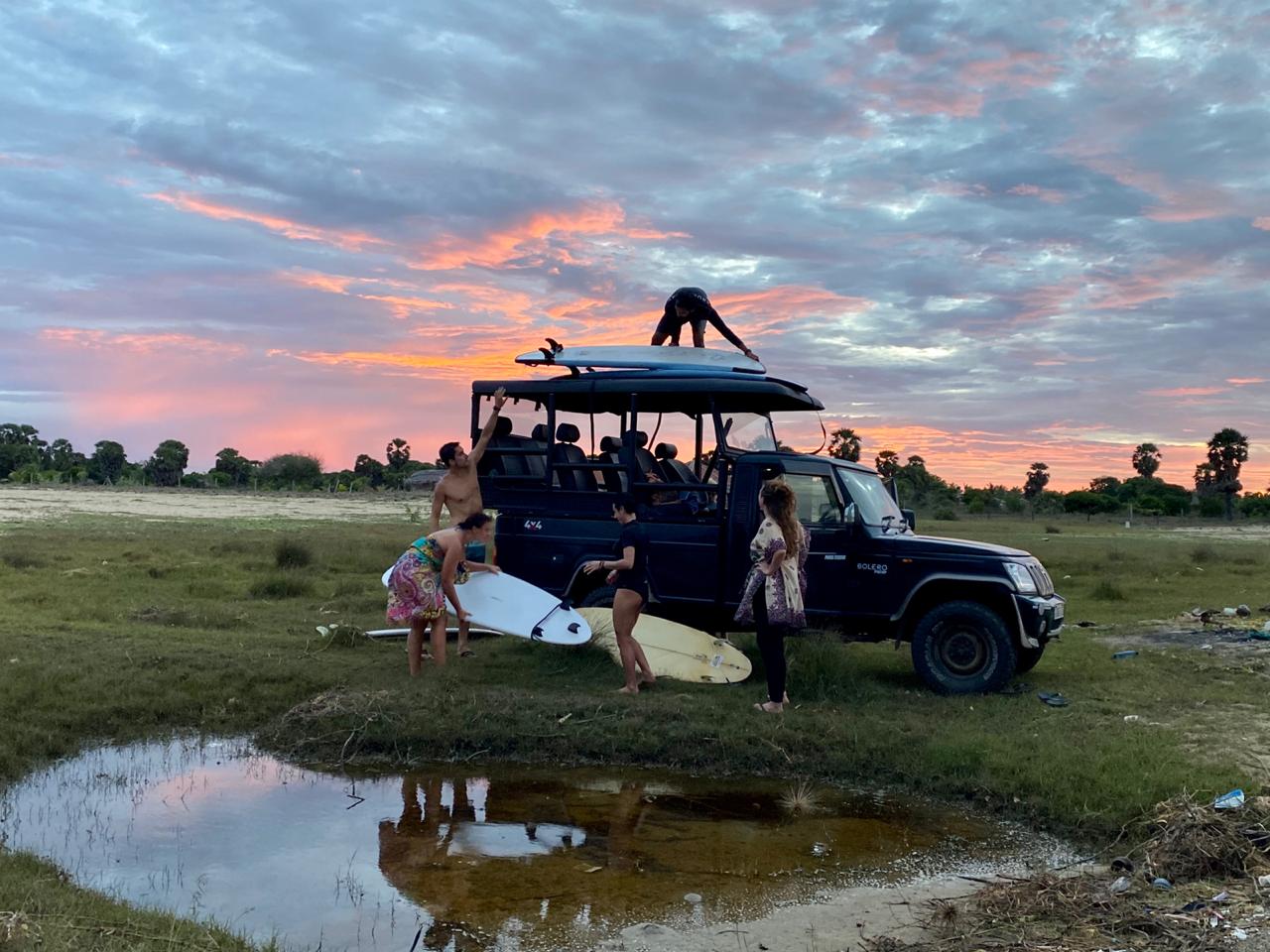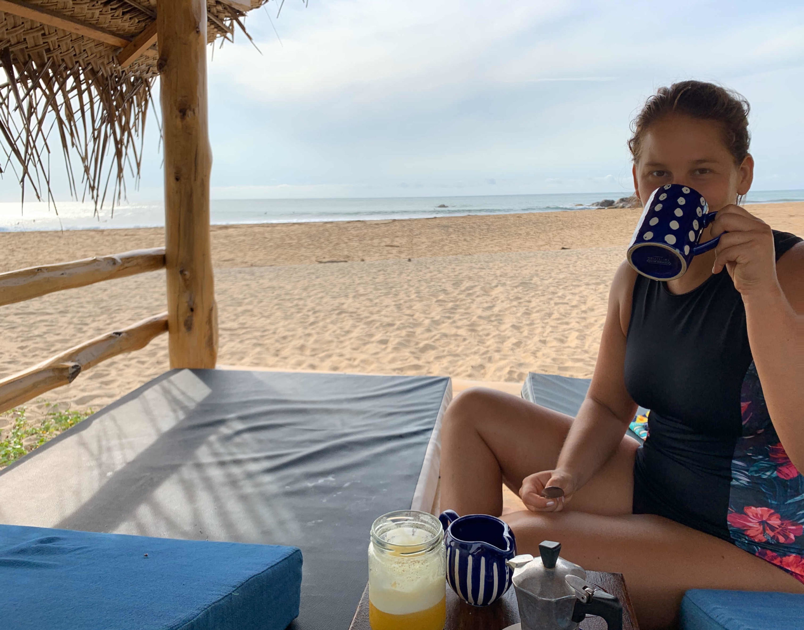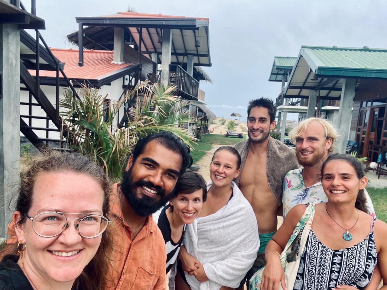 Endlich wieder was neues sehen und erleben! Wir wurden sehr herzlich vom Stay Golden in Arugam Bay aufgenommen, zusammen mit vielen Langzeitreisenden, die genauso wie wir gestrandet sind. Es fühlt sich richtig an wie eine kleine Corona Family – jeder in seinem Strandbungalow, aber doch eine Gemeinschaft. Da man immer noch nicht viel unternehmen kann, spielen wir Karten und nutzen die Happy Hour, nachdem wir 2 Monate keinen Alkohol getrunken haben (es gibt hier extra Liquor Shops nur für Alkohol, die aber nicht öffnen durften). Jeden Morgen fahren wir mit dem Jeep zum besten Surfspot, immer vorbei an der Kontrollstation mit schwer bewaffneten Männern. An den Anblick können wir uns immer noch nicht gewöhnen.