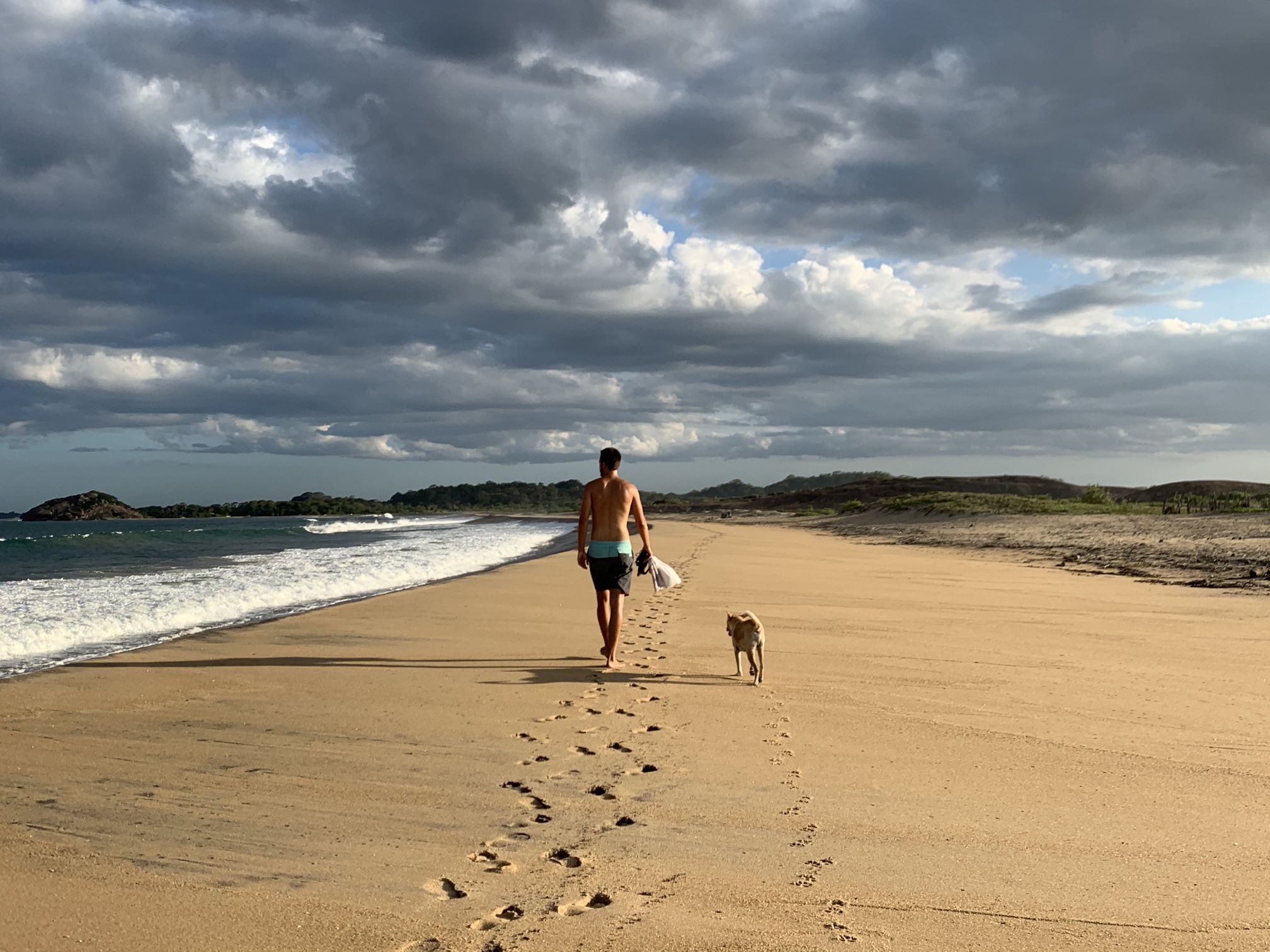Wir haben ein kleines Häuchen direkt am Meer gefunden, mit Blick auf das Line-up. Hier können wir das Ganze aussitzen, bis es hoffentlich bald weiter geht. Eine Woche konnten wir im Surfcamp noch verlängern, haben durch die tollen Coaches viel dazu gelernt und die Zeit mit netten Leuten verbracht. Jetzt kommt uns nur ab und zu der Nachbarshund besuchen. Wir sitzen viel auf der Terrasse, beobachten die Wellen, lesen, schlafen und genießen das entschleunigte Leben unter Palmen.