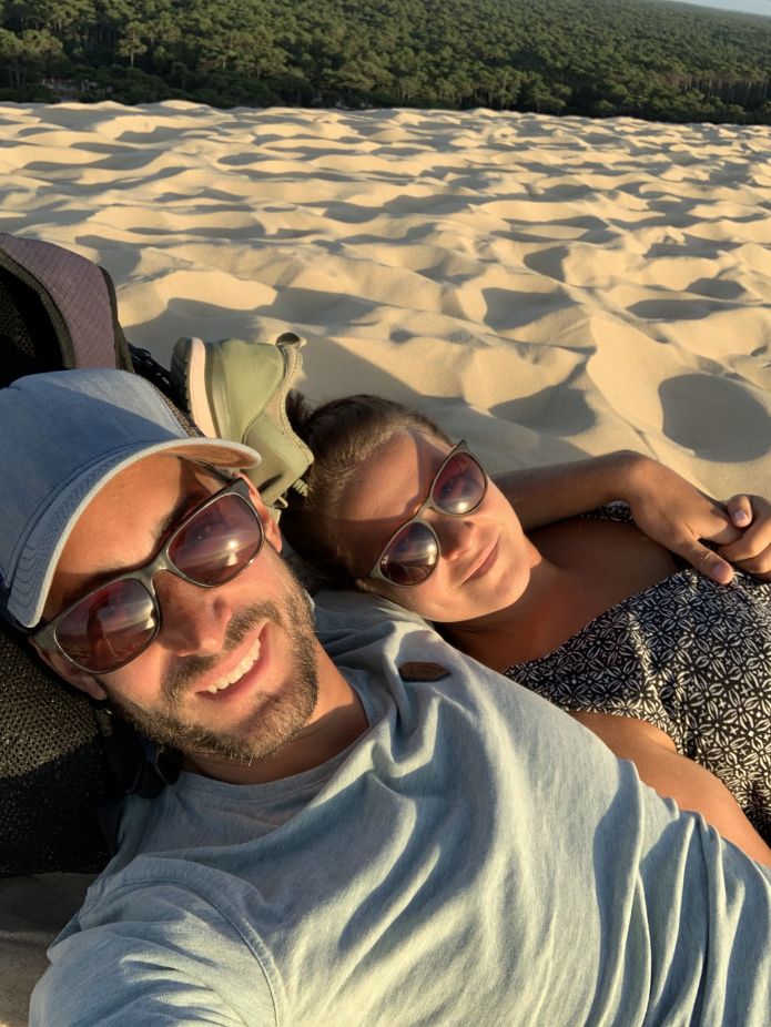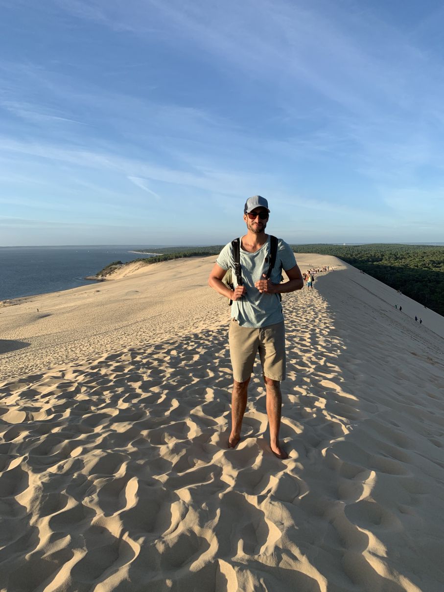 Als nächstes haben wir uns die Dune du Pilat angeschaut, eine riesige Düne genau am Meer, umgeben von Wald. Super anstrengend den tiefen Sand hinauf zu laufen, aber die Aussicht war es absolut wert!