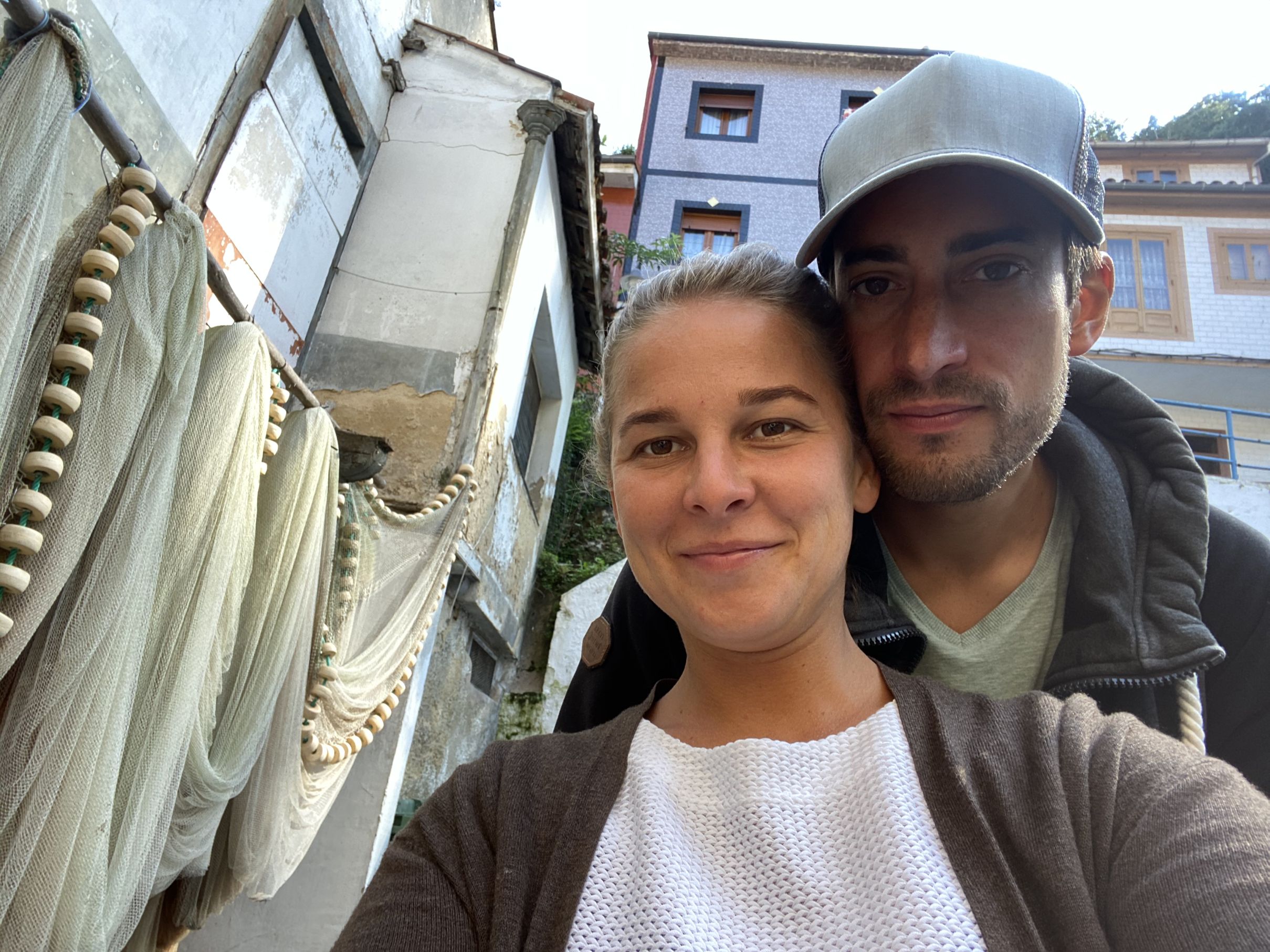 Kaum über die Grenze gefahren, fühlen wir uns direkt angekommen. Nord Spanien – eine raue Schönheit mit Bergen, grünen Wiesen, weidenden Kühen, felsiger Küste und klarem blauem Wasser. Die Landschaft erinnert uns häufig an das Allgäu, nur sind wir hier direkt am Meer mit vielen surfbaren Wellen.